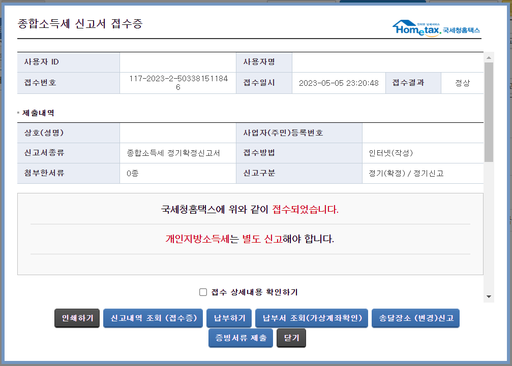 *화면에도 붉은 글씨로 써져 있듯 개인지방소득세도 별도로 신고해야합니다.